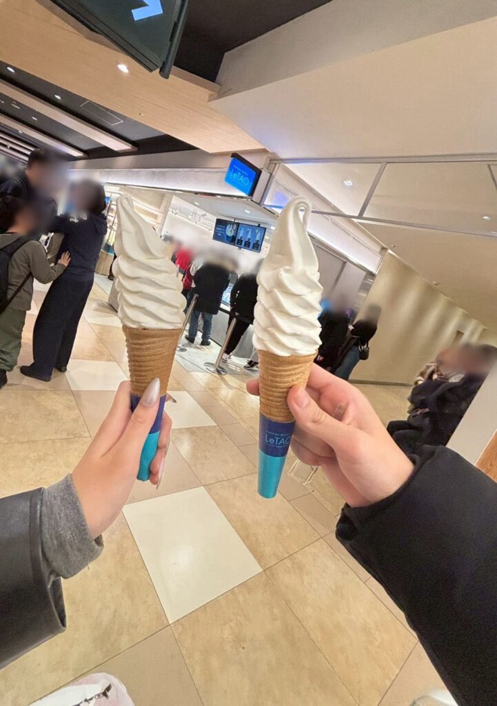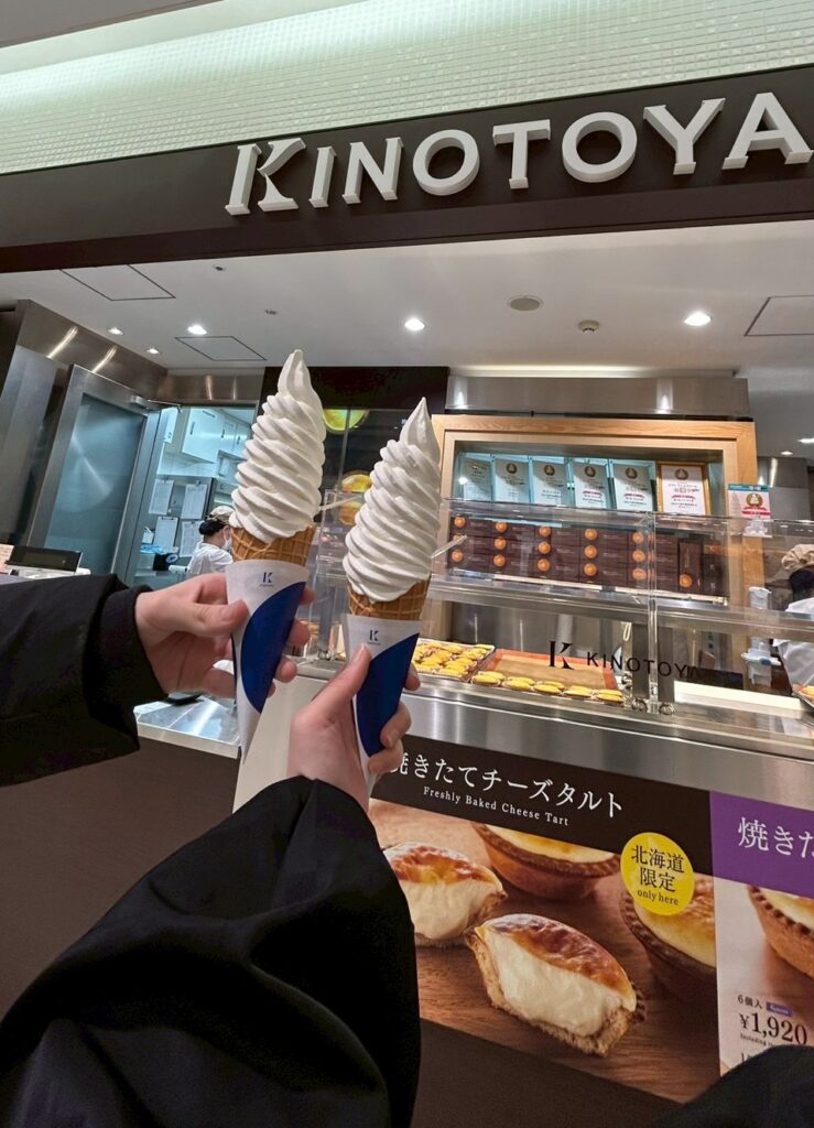 まずは、ソフトクリームで乾杯です。もっちり濃厚な牛乳を味わい、北海道に来たことを実感します。