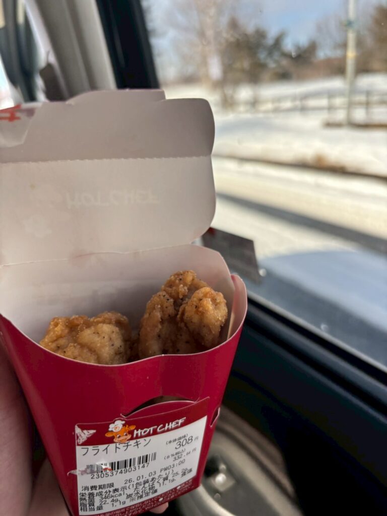 今回は、セーコーマートのホットシェフ”フライドチキン”と一緒の食べ方をご紹介。しっかり食べたい人も大満足の北海道米ご飯です。